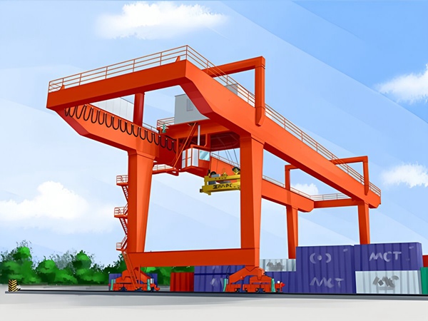 跨铁路桥式龙门吊:直接跨越铁路线作业,主要用于火车与堆场之间的货物装卸。这种类型的龙门吊通常无悬臂或带有短悬臂,以充分利用铁路线上方的空间。