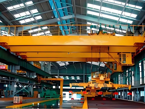 冶金行业场景:炼钢、轧钢、铸造车间,用于钢卷、板坯、钢水包等高温、重型物料搬运,选用冶金专用双梁起重机,工作级别 A7~A8,具备耐高温、抗冲击、双重制动特性。